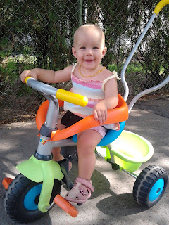 Nemrég megkapta Léna első triciklijét. Nagyon évezzük a sétákat, jobban kilát belőle. :)