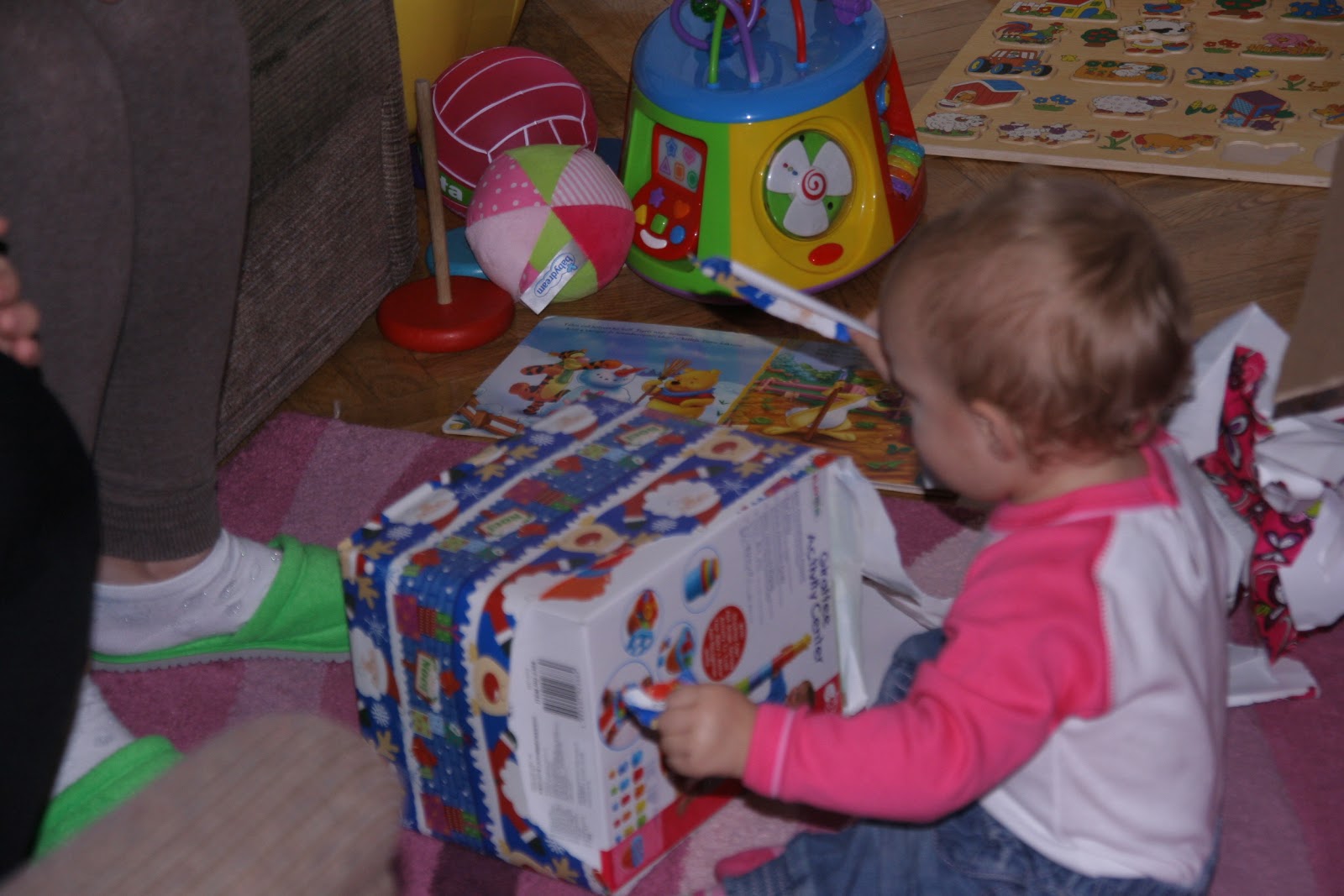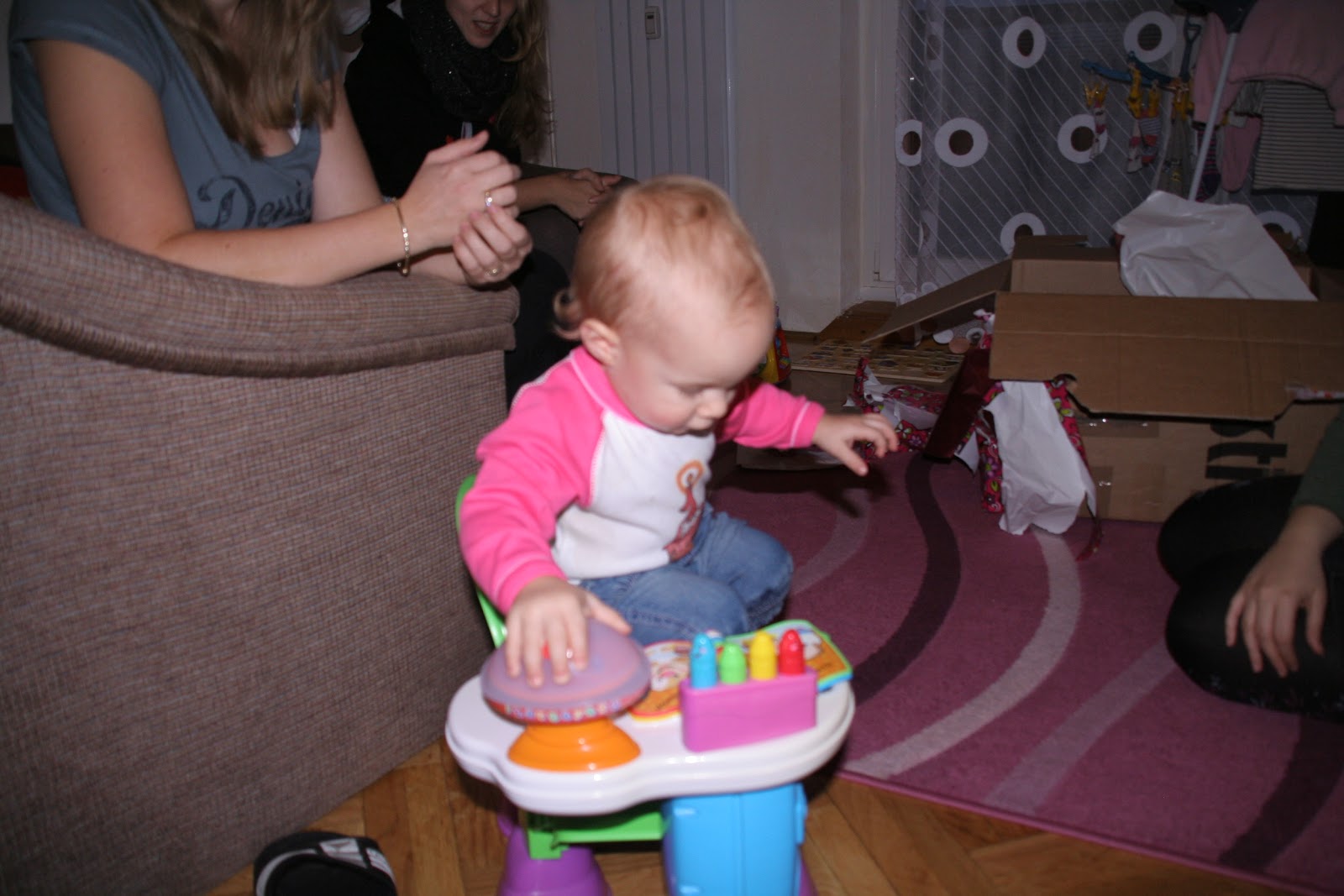 Kapott sok szépet és jót, mamától nyuszis motort, anyáéktól tanuló széket, mely angol nyelven beszél és énekel, nagybácsitól és nagynénitől 3D-s falmatricákat, melyeken állatok vannak (ezek már a kiságy felett is vannak), és keresztanyától egymásba és egymásra helyezhető formákat.